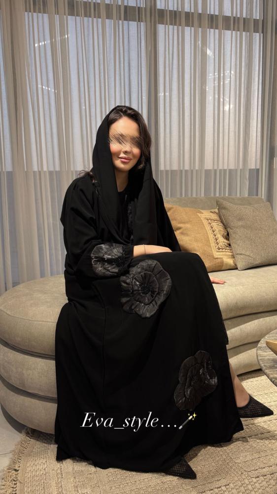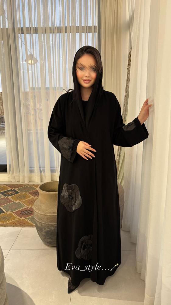عباية ايلينا نوع القماش كريب صيفي تطريز الورد مع الكرستال الأسود لف من الاماميوجد معها طرحهلا يوجد تعديل